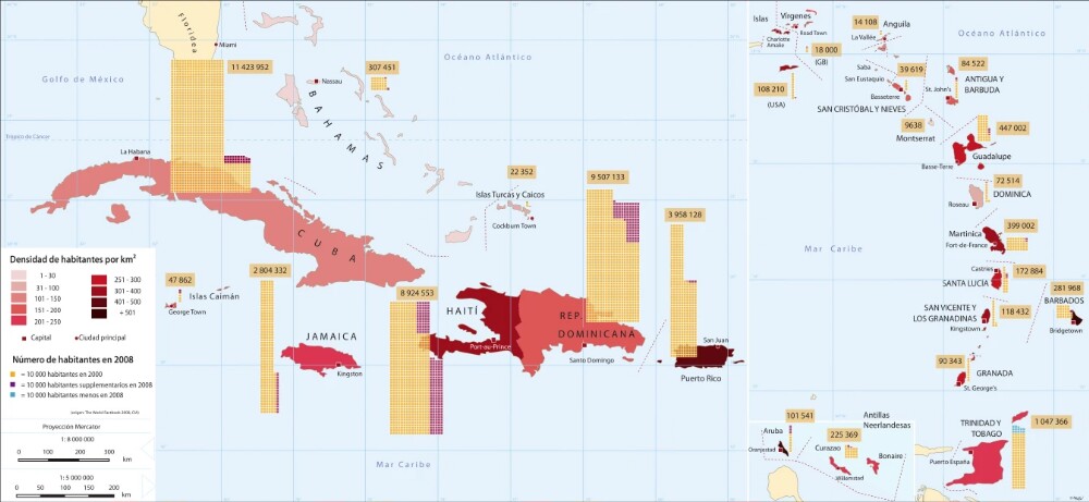 Bégot, M. (2014). Poblacion y densidades (2008). Atlas Caraïbe.