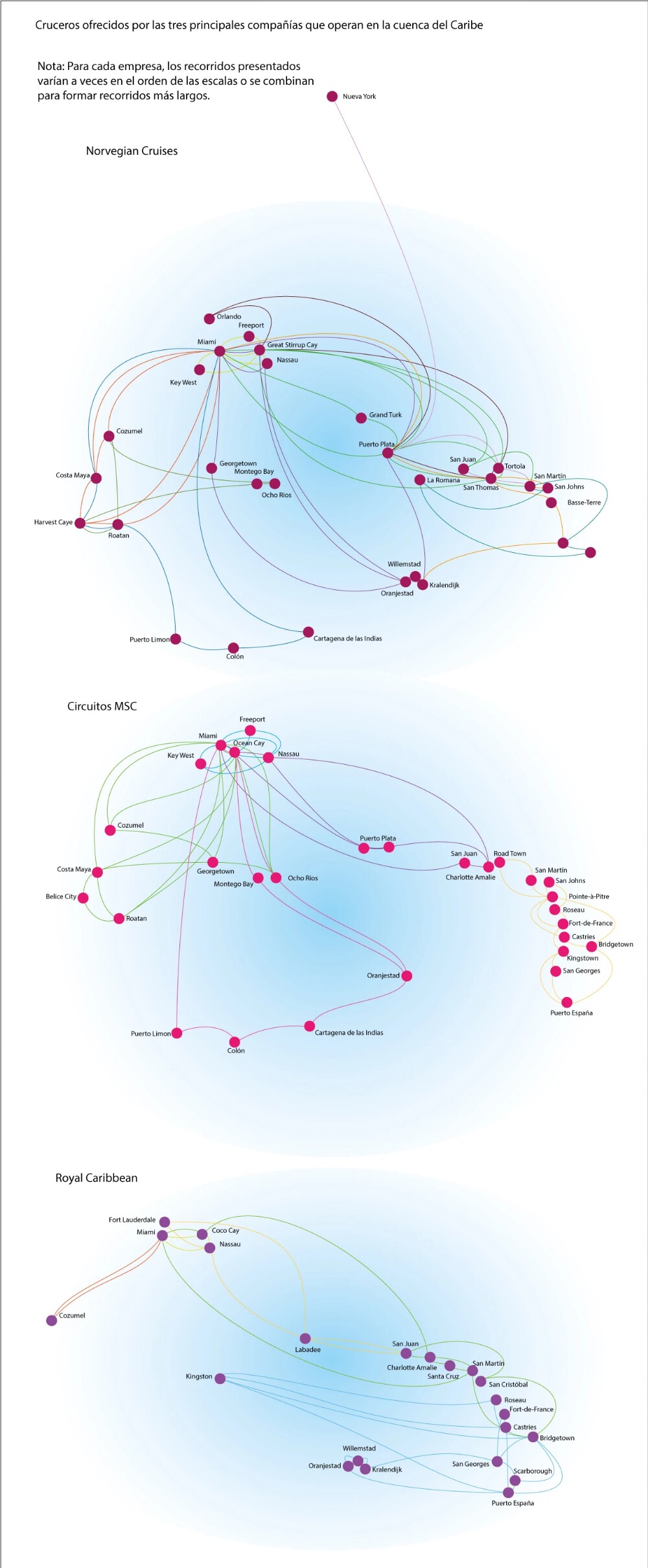 En este espacio marítimo, las islas y algunas ciudades del litoral tienen una función de hubs o de intermediarios y dan forma a una geografía del turismo de cruceros.
