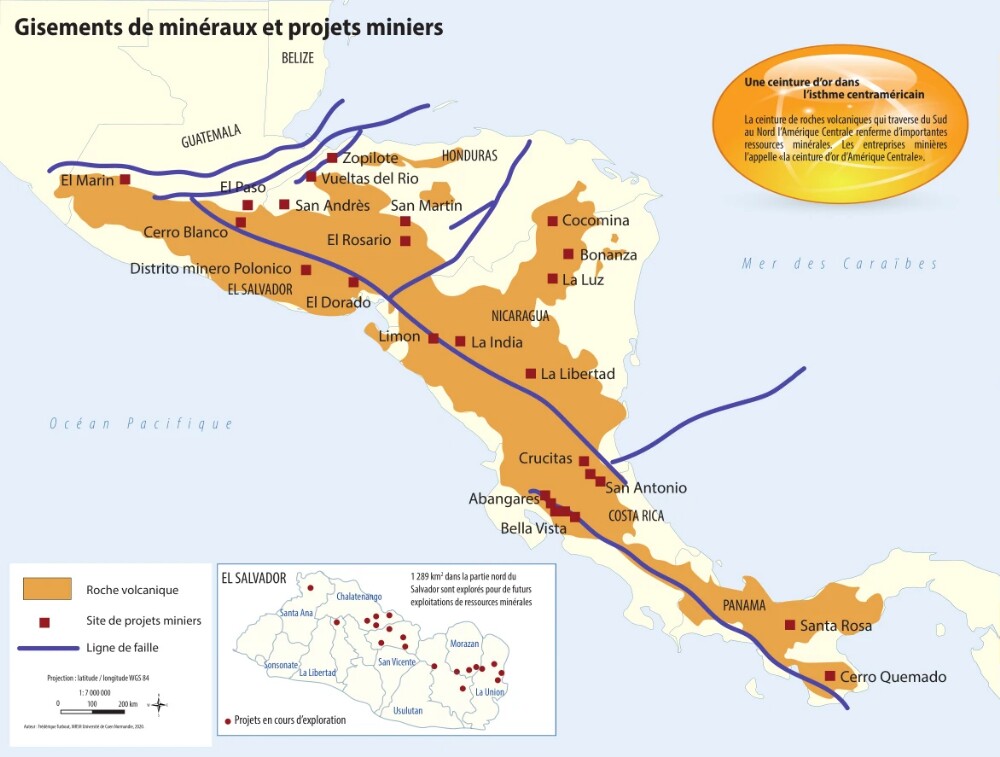 Pour la seule Amérique Centrale, il y a 15 projets miniers emblématiques : tous sont le fait de sociétés canadiennes ayant des filiales dans chacun des pays, à l’exception des mines du Honduras et du Salvador où les capitaux sont nord-américains. L’or et l’argent sont exploités au Nicaragua (extraction dans le triangle minier, au Nord), dans la zone de la Mosquitia ou dans la région autonome des Caraïbes (entreprise américaine, canadienne et nicaraguayenne) et la mine d'Orodi dans la région sud.