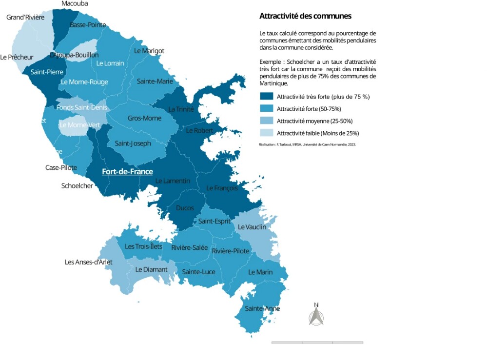 Pour illustrer cette attractivité du centre de l’île, il suffit d’observer le nombre de communes martiniquaises qui émettent des navetteurs à destination de ces communes.