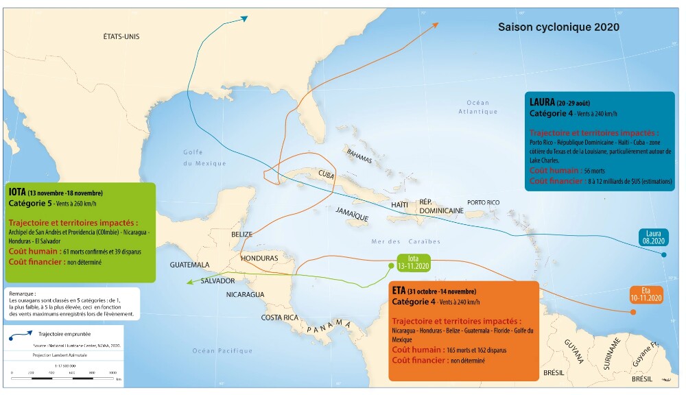 Ces évènements cycloniques majeurs s'enchaînent à un rythme jusque là, jamais observé dans la zone. Cette saison cyclonique et de tempêtes est exceptionnelle de part le nombre de dépressions accumulées et de tempêtes successives. Ces phénomènes dévastateurs impactent fortement des États déjà fragilisés et ceci dans une période sanitaire extrêmement tendue par la crise de la Covid-19.